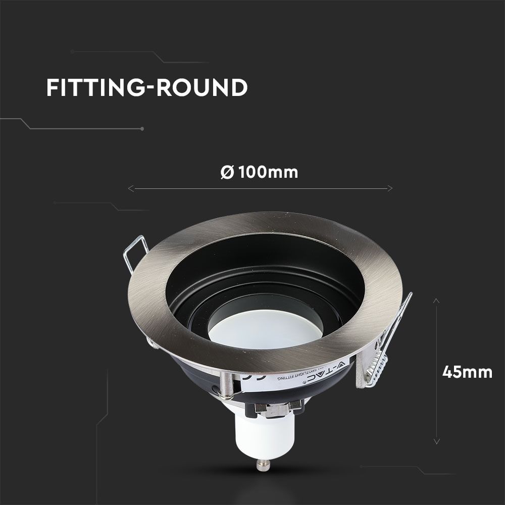 Βάση Σποτ GU10 – MR16 V-TAC Χωνευτή Στρογγυλή Νίκελ – 3596