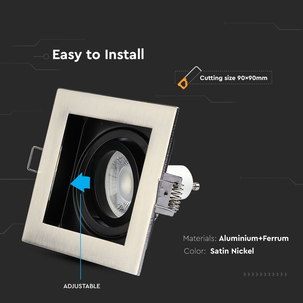 Βάση Σποτ GU10 – MR16 V-TAC Χωνευτή Τετράγωνη Νίκελ – 3598