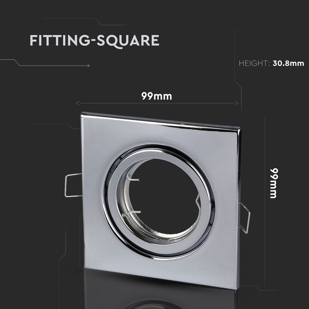 Βάση Σποτ GU10 – MR16 V-TAC Χωνευτή Τετράγωνη Ρυθμιζόμενη Χρώμιο – 3474