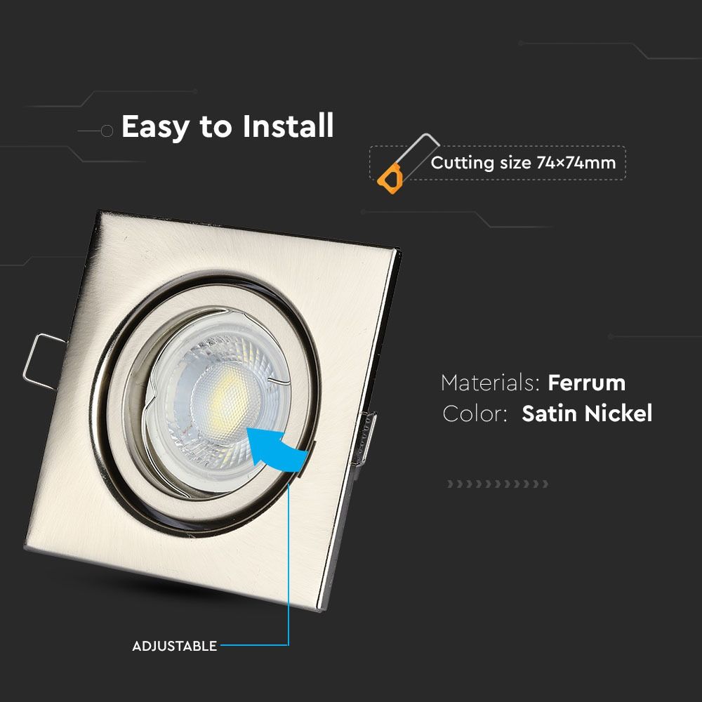 Βάση Σποτ GU10 – MR16 V-TAC Χωνευτή Τετράγωνη Ρυθμιζόμενη Νίκελ – 3473