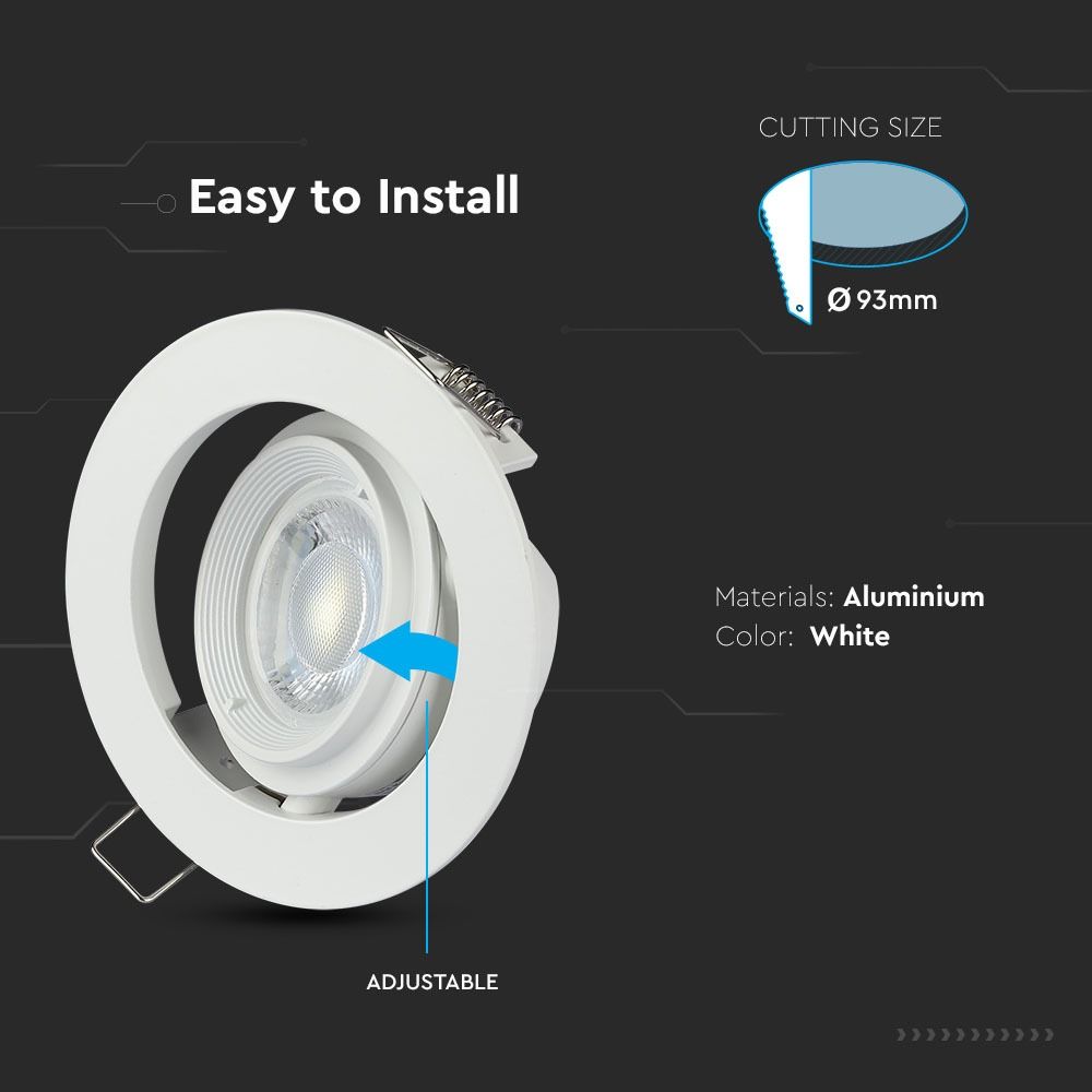 Βάση Σποτ GU10 – MR16 V-TAC Ρυθμιζόμενη Χωνευτή Στρογγυλή Λευκή – 3689