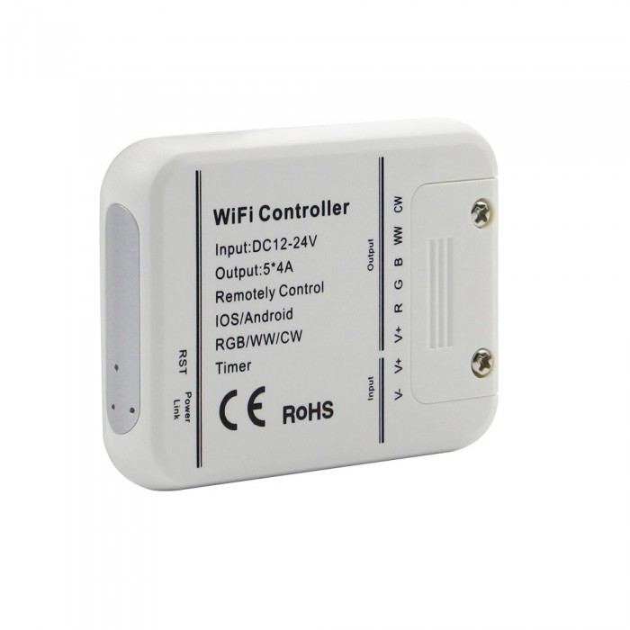 V-TAC Smart LED Controller για Ταινίες LED με σύνδεση Wi-Fi. Με αυτόν τον Controller Dimmer, μπορείτε να ρυθμίσετε την ένταση του φωτός, να ενεργοποιήσετε και να απενεργοποιήσετε τις Ταινίες LED RGB, RGBW, RGBWW ή Μονόχρωμες. Ο Controller είναι κατασκευασμένος από λευκό πλαστικό για πολύ πρακτική χρήση, στην πραγματικότητα απλά συνδέστε τον Controller στην τροφοδοσία μέσω των βιδωτών ακροδεκτών, χωρίς να χρειάζεται συγκόλληση. Χάρη στη σύνδεση Wi-Fi, μέσω της κατάλληλης εφαρμογής Magic Home για smartphones iOS και Android , μπορείτε να ελέγξετε τη LED Ταινία συνδεδεμένη στον Controller μέχρι περίπου 30 μέτρα μακριά.