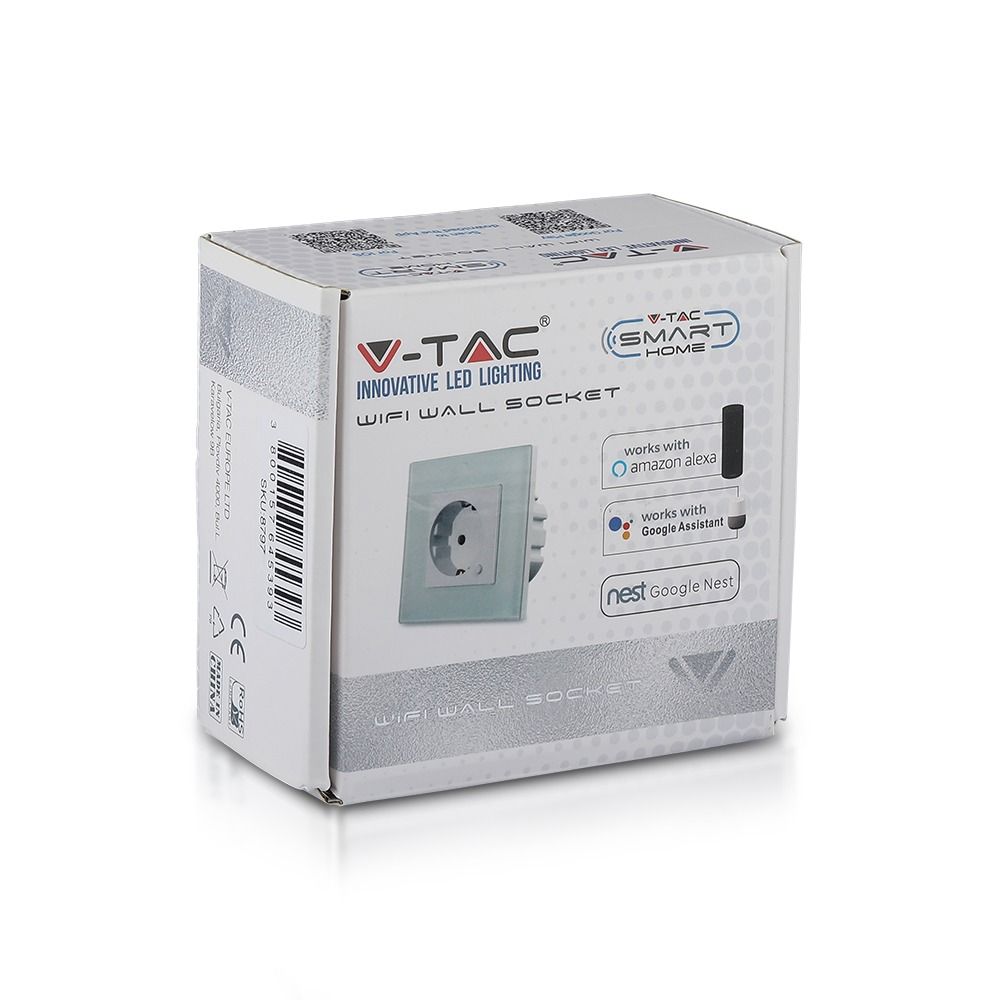 Wi-Fi Πρίζα Σούκο Μαύρη Πλαστικό & Γυαλί Smart Home Συμβατή Με Amazon Alexa & Google Home V-TAC – 8797